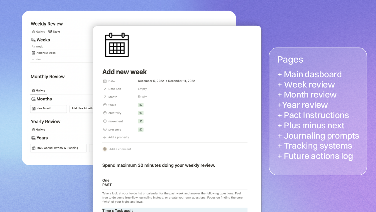 In my pre-nomad life when I was a bullet journal freak I had so much fun doing these reviews on my journals, so if you're more into analog journaling feel free to use the Notion template as a guide.