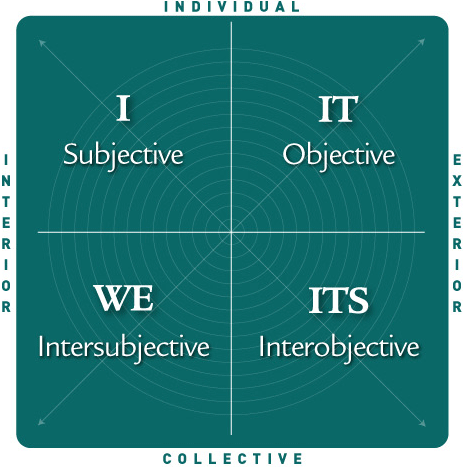 While some might like to reduce reality to the brain and it's neuroscience (It-objective), and others to the mind and its thoughts (I-subjective), Integral Theory holds that all quadrants are essential; the more we can bring awareness to these perspectives, the more comprehensive and balanced we can be with our actions and reactions.
